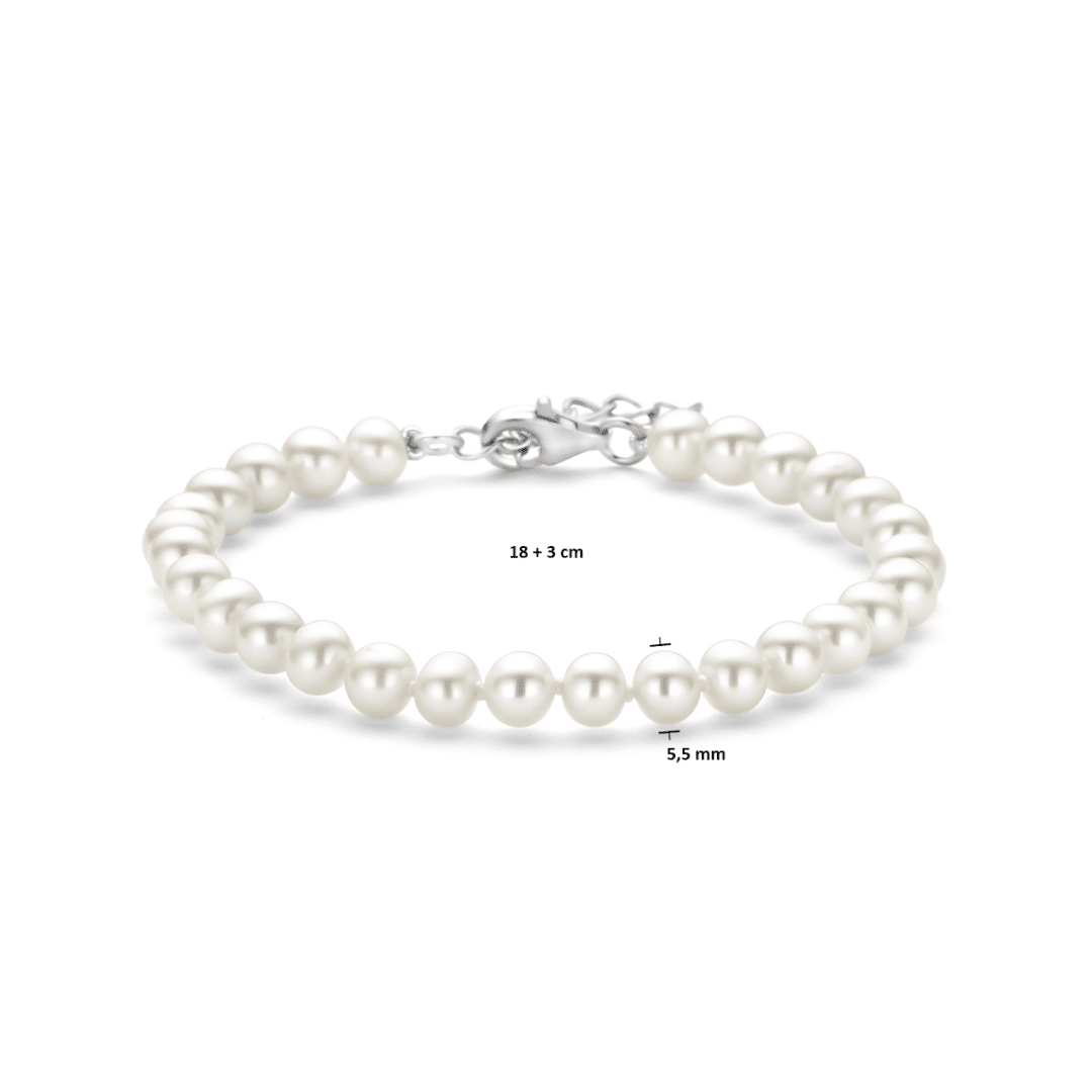 armband parel 5,5 mm 18 + 3 cm zilver gerhodineerd