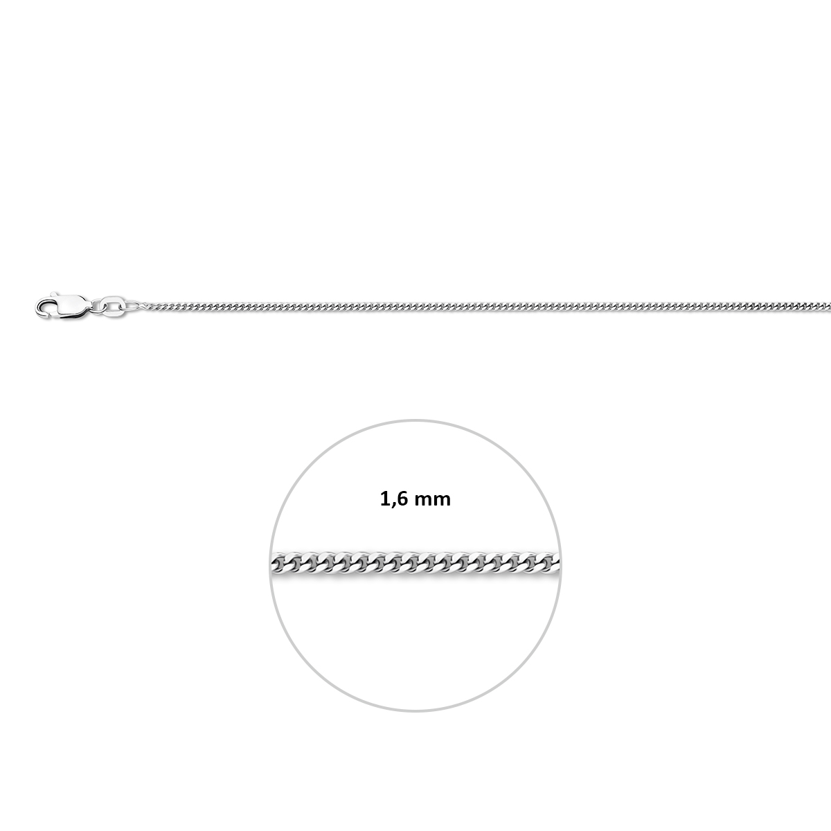 collier gourmette 4 zijdes geslepen 1,6 mm zilver gerhodineerd