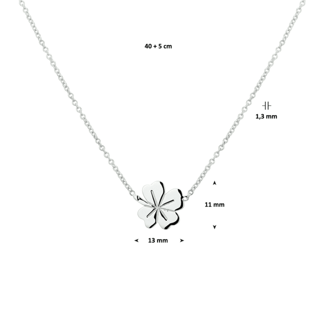 collier klaver 41 + 4 cm zilver gerhodineerd