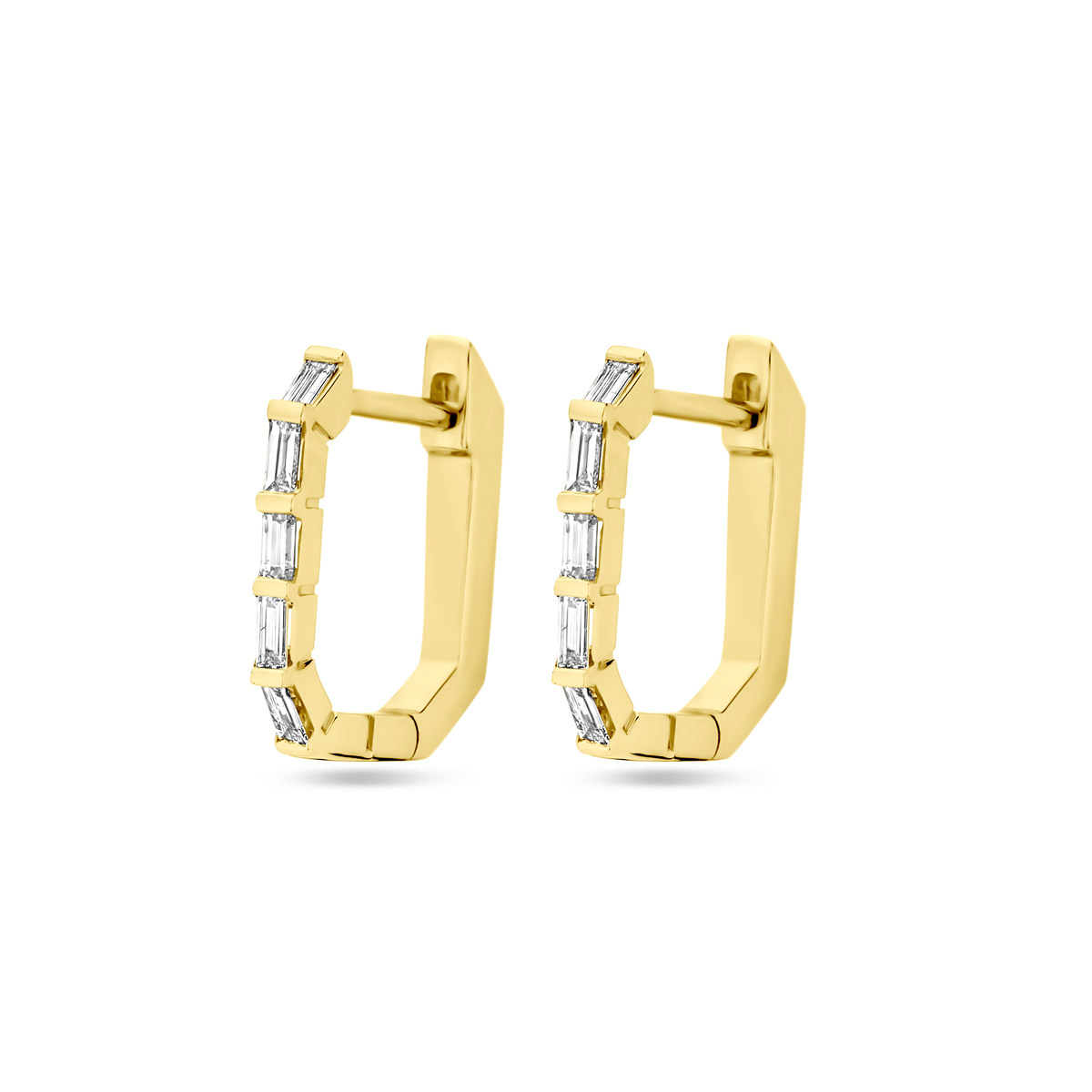 Geelgouden klapoorringen met diamant baguettes