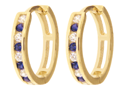 Gouden klapcreolen blauw saffier en zirkonia