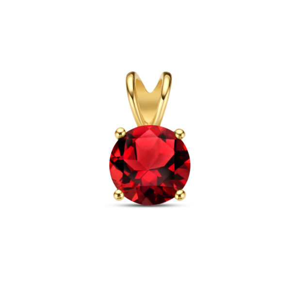 Met deze rode granaathanger val je zeker op! De granaat is een prachtige heldere kleur rood en heeft een diameter van 6,3mm. De steen is gezet in een vierpoot chaton zetting. De totale lengte van de hanger is 10,7mm.