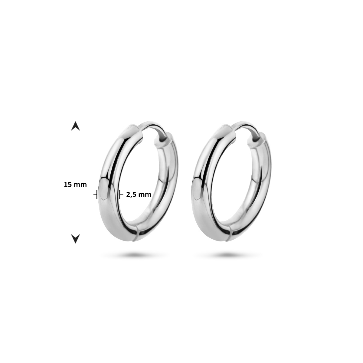 Mooie tijdloze klapoorringen van 14k witgoud. De oorringen zijn mooi te dragen voor elke gelegenheid. Ook leuk om er een hangertje aan te hangen en ze te combineren met onze gouden oorknoppen. De oorringen zijn 15mm in diameter en zijn 2,5mm breed. De sluiting van de oorring klikt simpel in elkaar en is daardoor gemakkelijk in en uit te doen.