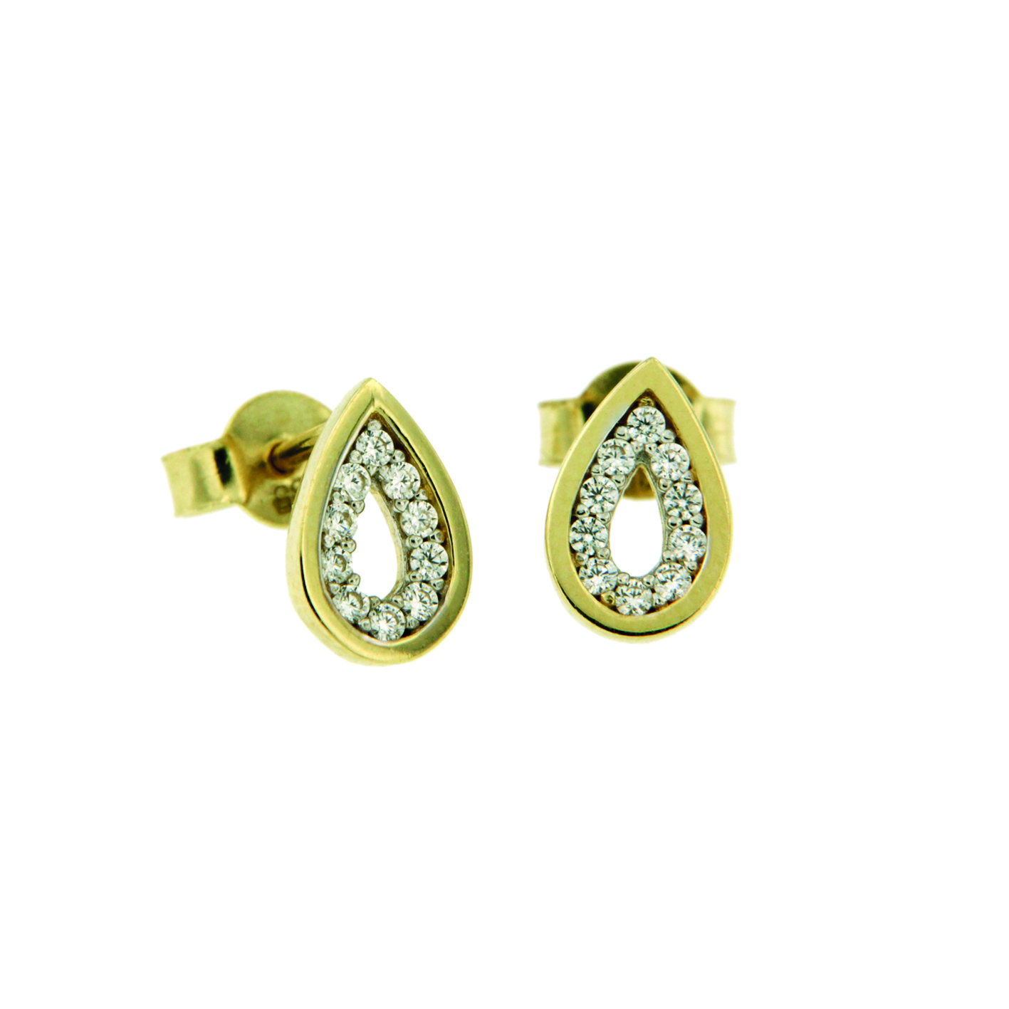 Gouden oorstekers in druppelvorm met zirkonia
