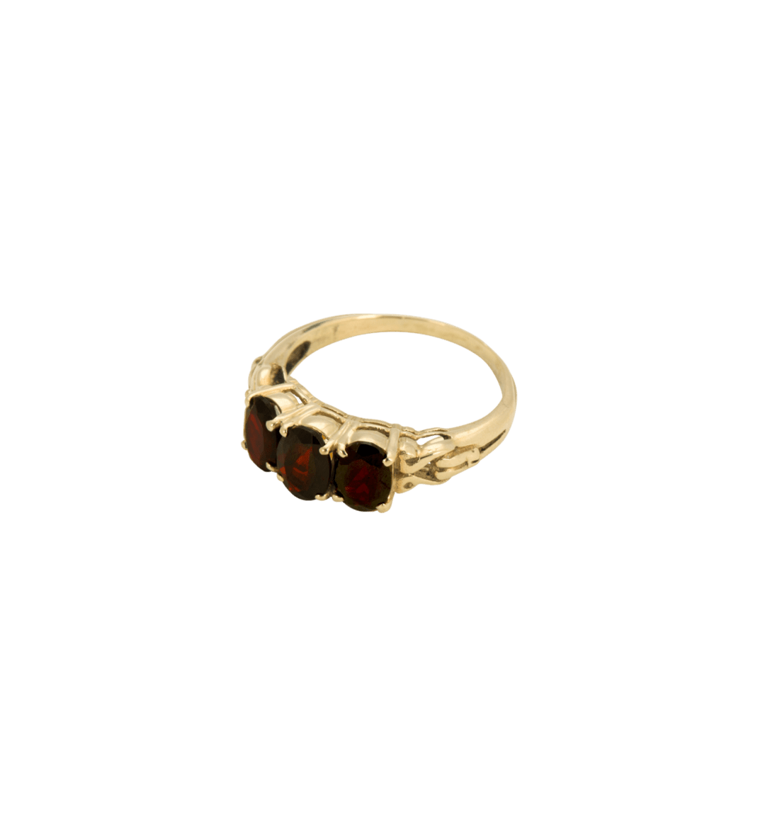 De Rose Granaat Ring is een vintage-geïnspireerd juweel met een tijdloze uitstraling. Handgemaakt van 100% gerecycled 14-karaats goud en bezet met drie diepe, warmrode granaatstenen, straalt deze ring elegantie en karakter uit. Perfect als betekenisvol cadeau voor iemand die je liefhebt — of gewoon als luxe verwenmoment voor jezelf. Want sommige schatten wil je gewoon houden.