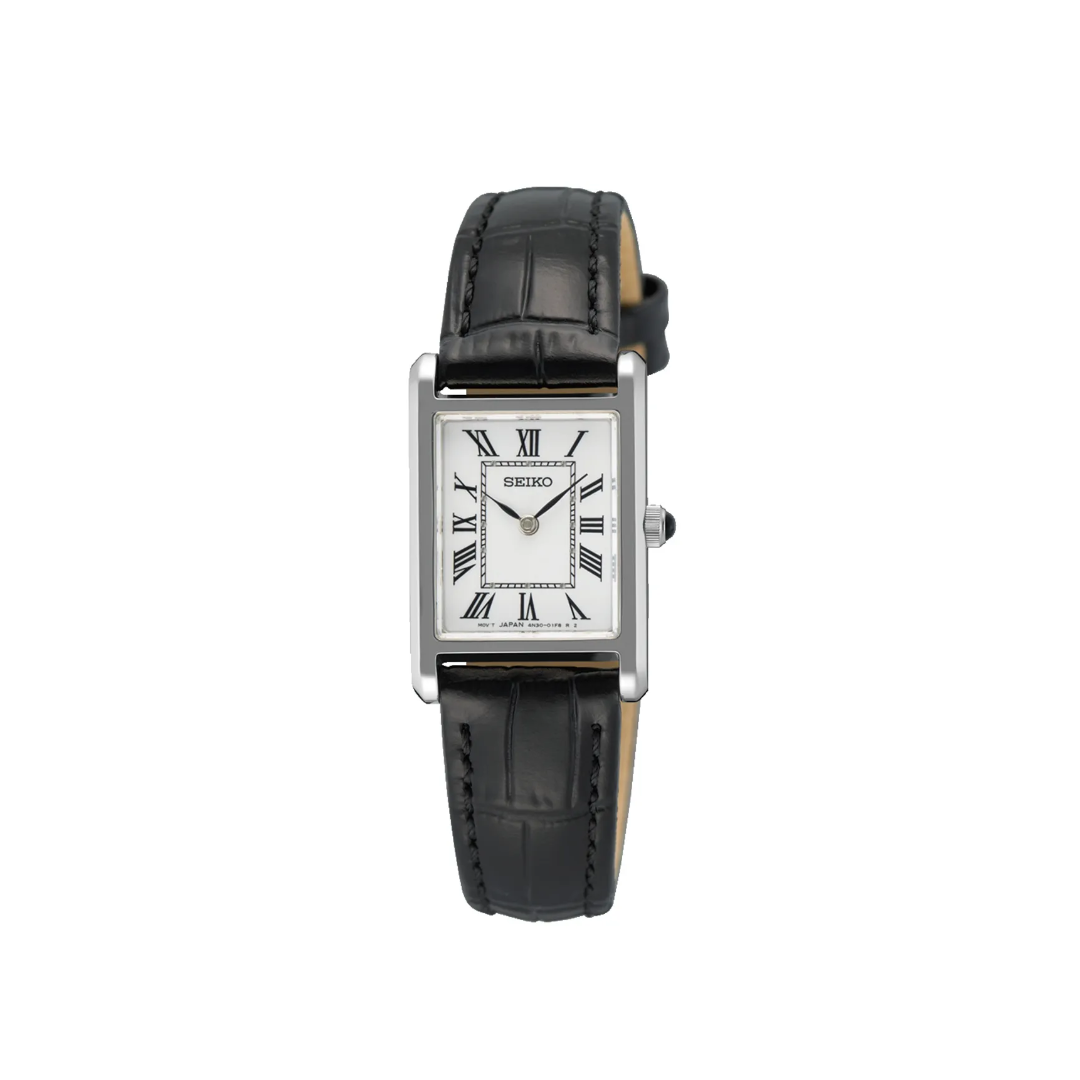 Dit Seiko horloge heeft een kast gemaakt van Roestvrijstaal met een diameter van 19.6 mm en is voorzien van een leren band. In de kast bevindt zich een Seiko kwaliteitsuurwerk en is afgewerkt met Saffierglas.