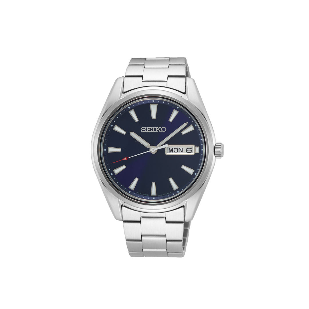 Dit horloge toont datum en dag van de week en is voorzien van een betrouwbare Seiko quartz-beweging. Dankzij de waterbestendigheid tot 10 ATM (100 meter) is hij geschikt voor dagelijks gebruik en lichte zwemsessies . De fully stainless steel schakelband sluit comfortabel met een veiligheidssluiting, waardoor het horloge ideaal is voor zowel casual als zakelijke settings .