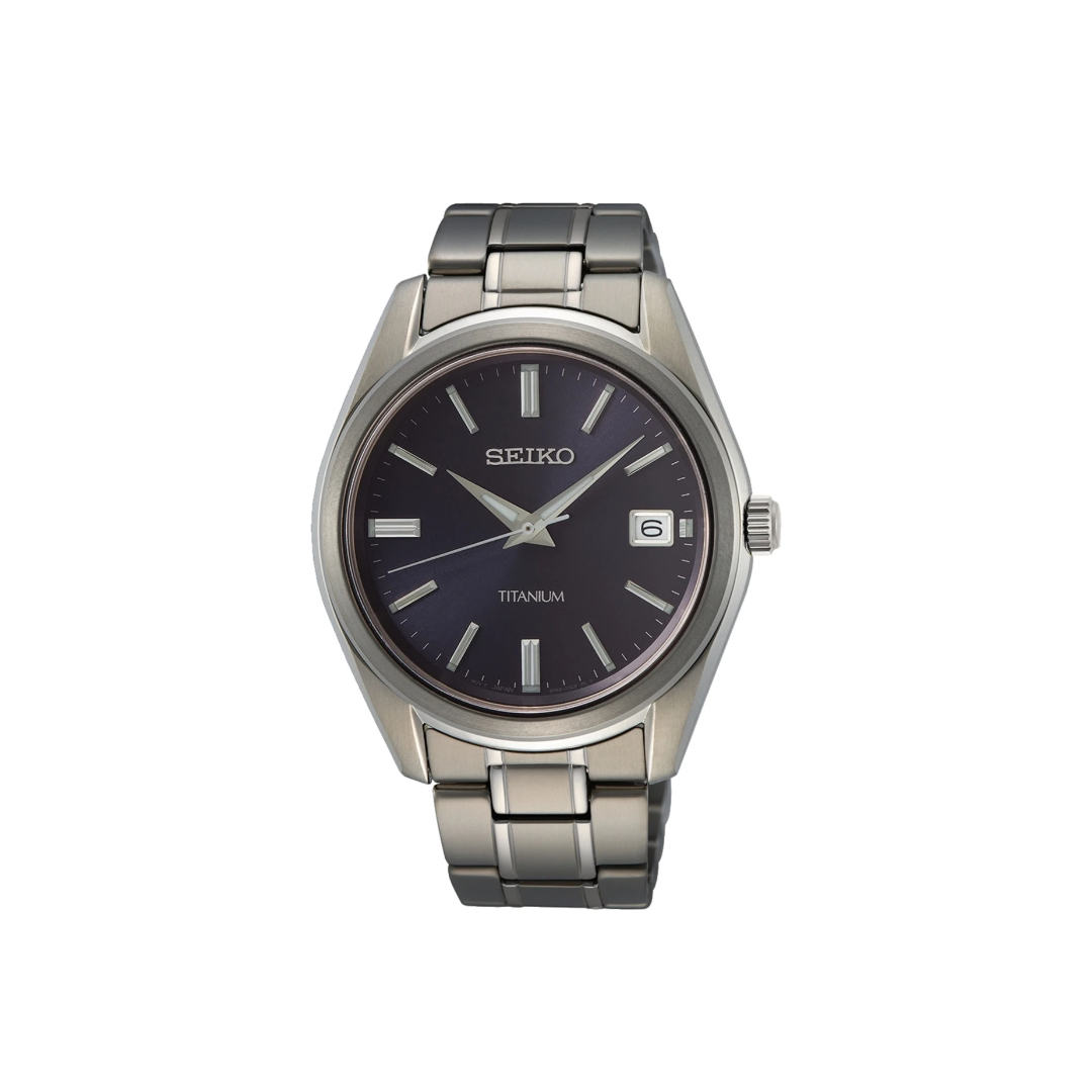 Seiko SUR373P1 – Lichtgewicht Titanium Diamant klok met Blauw Sunray-wijzerplaat