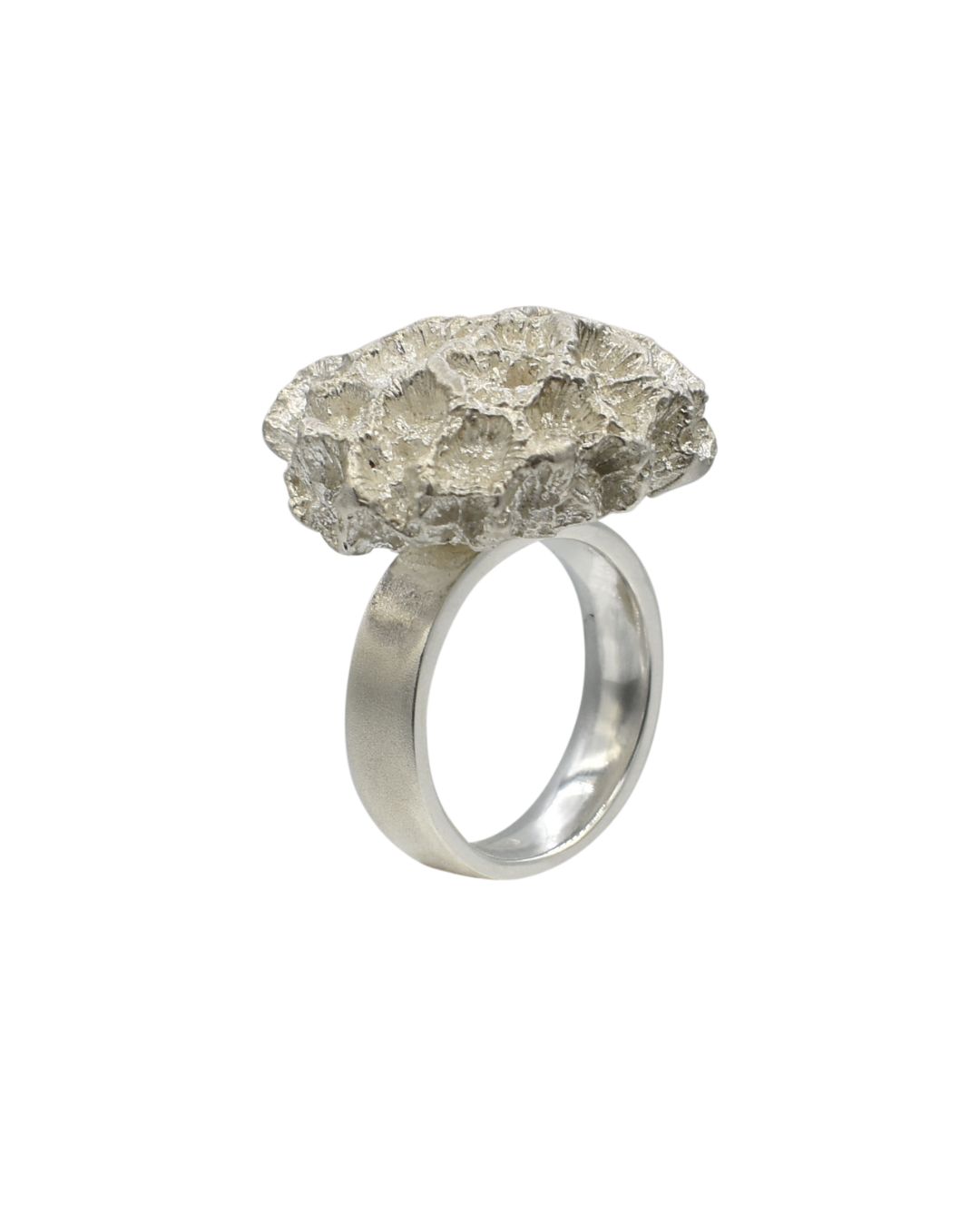 De Cabo Verde Flat ring is een uniek sieraad met een verhaal. Het zilveren koraalelement is gebaseerd op een echte afdruk van een stukje koraal, gevonden op het strand van de Kaapverdische Eilanden. Deze ring vangt de natuurlijke schoonheid van de oceaan in een krachtig en stijlvol ontwerp.